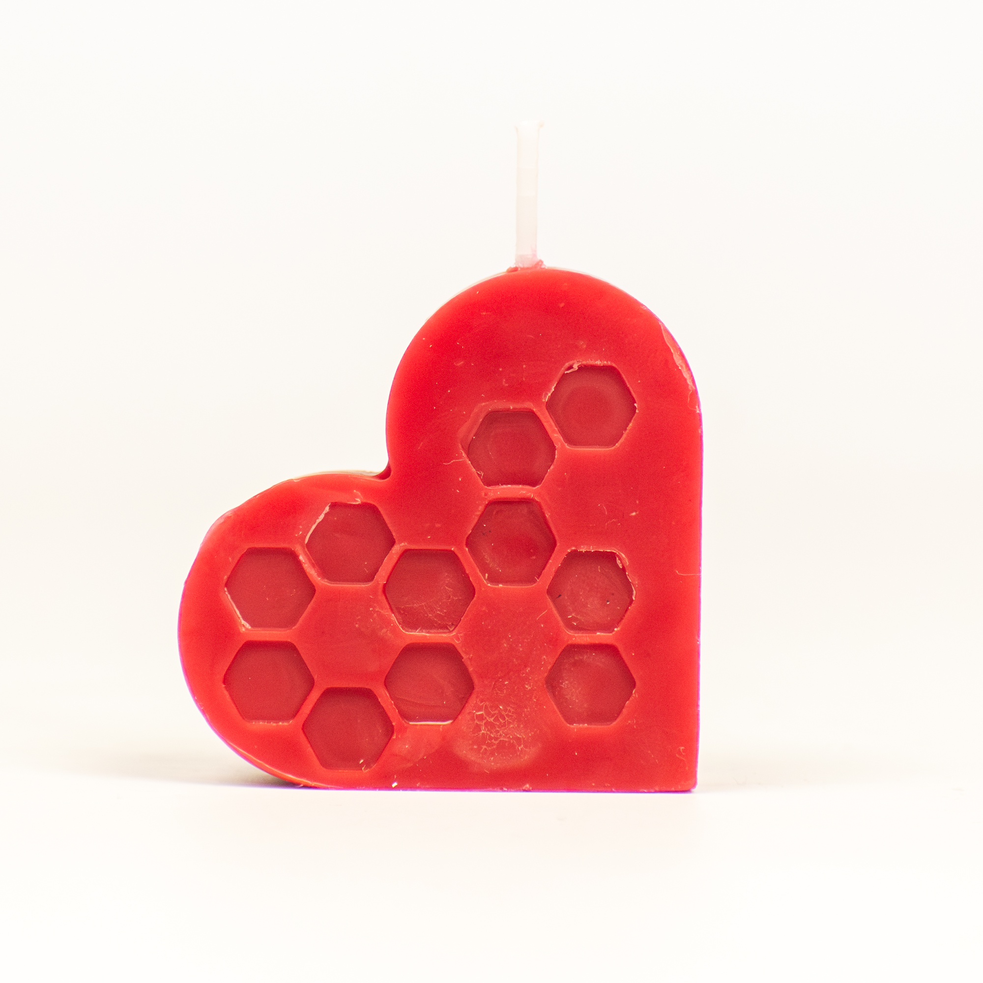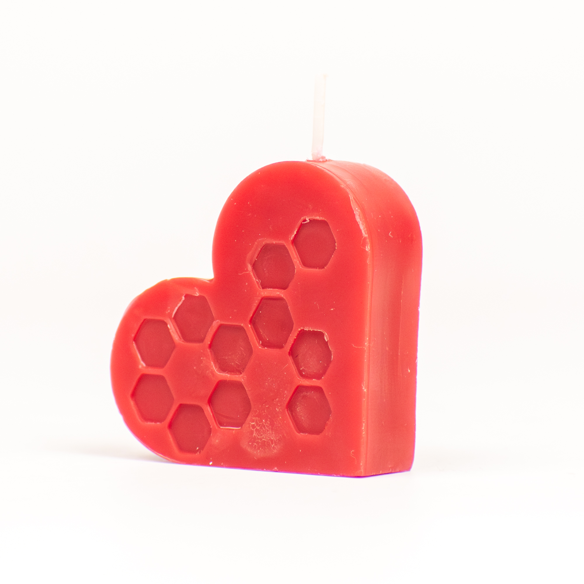 Lumânare decorativă în formă de inimă, de culoare roșie, creată pentru a aduce un plus de căldură și romantism oricărui spațiu. Potrivită pentru cadouri, decor de masă sau evenimente speciale. Un simbol clasic al iubirii, într-un design elegant și expresiv.