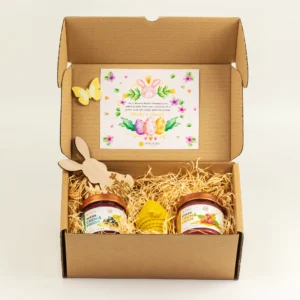 Un cadou de Paște plin de farmec, culoare și dulceață naturală! „Surpriza Iepurașului” este alegerea perfectă pentru a aduce bucurie celor dragi, combinând produse delicioase cu un ambalaj festiv și atent pregătit.